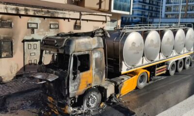 ESENYURT’ta süt taşıyan tankerin kupasında yangın çıktı. Yangın itfaiye ekipleri tarafından söndürülürken, tanker kullanılamaz hale geldi Yenikent Mahallesi Doğan Araslı Bulvarı üzerinde seyir halindeki süt tankerinde...