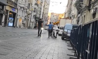 İSTİKLAL Caddesi’nde iki grup arasında belirlenemeyen bir nedenle kavga çıktı. Birbirlerine tekme tokat saldıran kişiler, bir süre sonra ara sokaklara girerek gözden kayboldu. Kavga anları ise...
