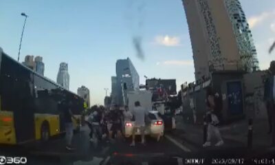 KAĞITHANE’de otomobil sürücüsü ve yanındakilerle, motosikletli 2 kişi trafikte kavga etti. Kavga anı başka bir sürücünün araç kamerasına an be an yansıdı. Olay, akşam saatlerinde Emniyetevleri...