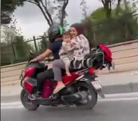 GÜNGÖREN’de kucağına çocukla motosikleti kullanan kişinin arkasına kasksız oturan kadının tehlikeli yolculuğu cep telefonu kamerasına yansıdı. Necip Fazıl Kısakürek Caddesi’nde dün akşam saatlerinde seyir halindeki motosiklette,...