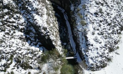 BARTINın Ulus ilçesinde, aşk acısını dindiren şelale olarak ünlenen Ulukaya kanyonu ve şelalesi, nisan ayında kar yağışıyla birlikte seyrine doyumsuz bir güzelliği büründü. Eşsiz güzellik havadan...