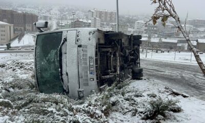Kaza, saat 07.30 sıralarında Raşitbey Mahallesi TOKİ bağlantı yolunda meydana geldi. Bir fabrikada çalışan işçileri taşıyan Abdullah A. yönetimindeki 50 EC 110 plakalı servis midibüsü kar...