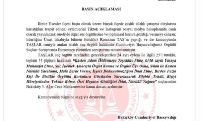 Bakırköy Cumhuriyet Başsavcılığı, kamuoyunda Taşlar olarak bilinen suç örgütüne yönelik yürütülen soruşturmanın tamamlandığını duyurdu. Soruşturma kapsamında 25i tutuklu toplam 33 şüpheli hakkında Ağır Ceza Mahkemesinde kamu...