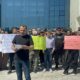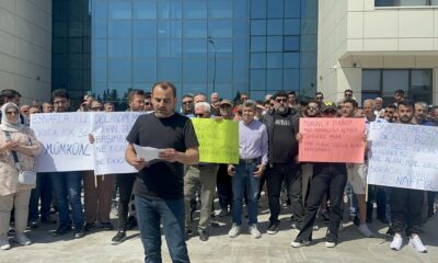 Belediye Binası önünde toplanan esnaf, ellerinde, ‘Turunç’a serbest, ara sokaklara serbest sitelere yasak’, Esnafız, emekçiyiz, görün bizi’, ‘Rant değil geçim derdindeyiz’, ‘Adil alan, adil geçim’ yazılı...