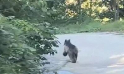 RİZE’nin Çamlıhemşin ilçesinde yiyecek aramak için köye inen ayı, Çamlıhemşin Esnaf ve Sanatkarlar Odası Başkanı Cumali Bergal tarafından aracın önünde koşarken cep telefonuyla görüntülendi. Bergal, görüntüleri,...