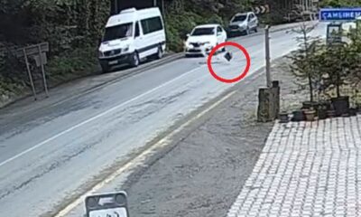 Olay öğleden sonra Çamlıhemşin ilçesi Ayder Yolu’nda meydana geldi. Yamaçtan kopan kaya parçası yola düştü. O esnada yoldan geçen bir otomobil, kayaya çarpmaktan son anda kurtuldu....
