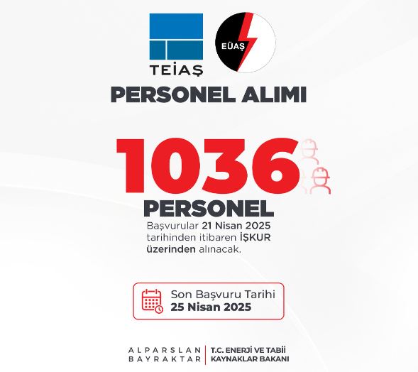Enerji ve Tabii Kaynaklar Bakanı Alparslan Bayraktar, sosyal medya hesabından yaptığı açıklamada, “Enerji sektörümüzde insan kaynağını güçlendirmek üzere yeni bir adım atıyoruz. EÜAŞa 601 teknisyen ve büro görevlisi, TEİAŞa ise 435 tekniker ve destek personeli olmak üzere toplam 1036 yeni çalışma arkadaşımız kadromuza dahil olacak. Yeni arkadaşlarımızın, üretimden iletime uzanan enerji altyapımızın her aşamasına katkı sunacağına inanıyorum. Kendilerine şimdiden hayırlı olsun dileklerimi iletiyorum” dedi.
