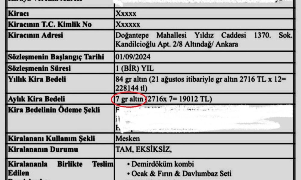 Malatya İnönü Üniversitesi İlahiyat Fakültesi İslam Hukuku Profesörü Ali Duman, Ankaranın Altındağ ilçesi Doğantepe Mahallesindeki evini kiraya vermek için sözleşme hazırladı. Duman, sözleşmede, aylık kira bedelini 7 gram altın, yıllık kira bedelini 84 gram altın ve depozito ücretini ise 500 dolar olarak belirledi.