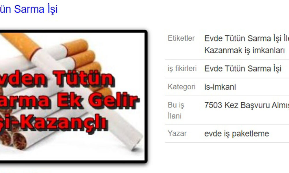 Evde tütün sarma işi ilanına başvuranlar, ilanı veren kötü niyetli kişilerin başlangıç ücreti olarak talep ettiği parayı gönderiyor ya da sardığı paket ücretinin ödenmemesiyle mağdur oluyor. Bazıları da banka aracılığıyla hesap numarasına gönderdiği az miktarda para sonrası görüşmelerde mağdurların kişisel bilgisini edinip, para aklama amacıyla kullanıyor.