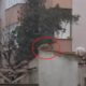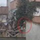 Evlerin bahçe duvarlarının üstünde gezen tilki kamerada