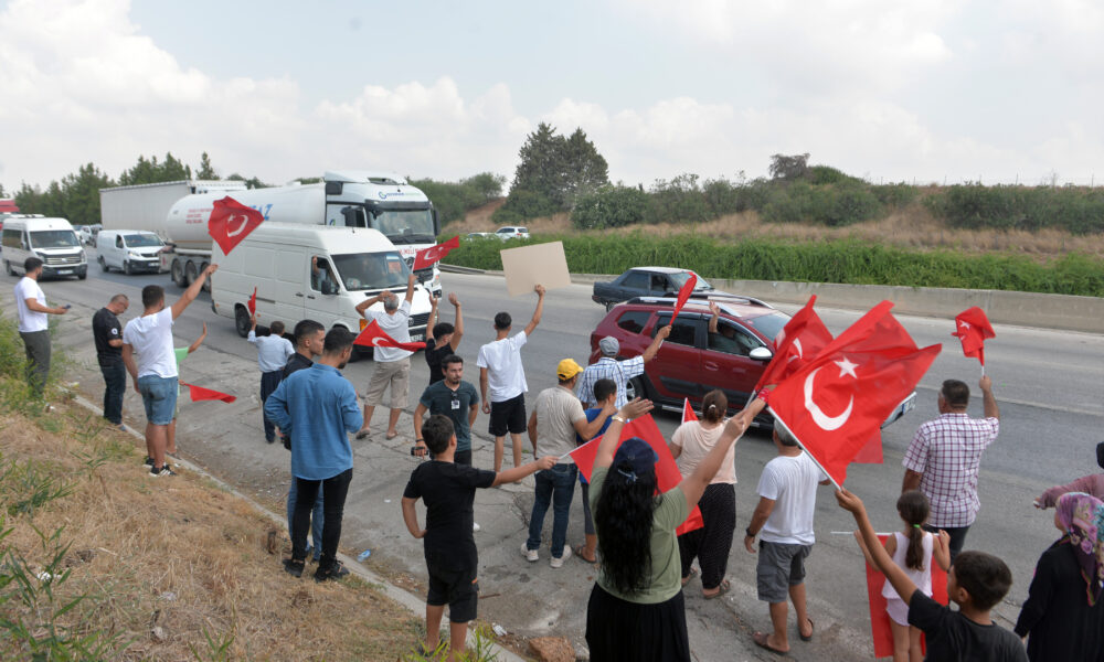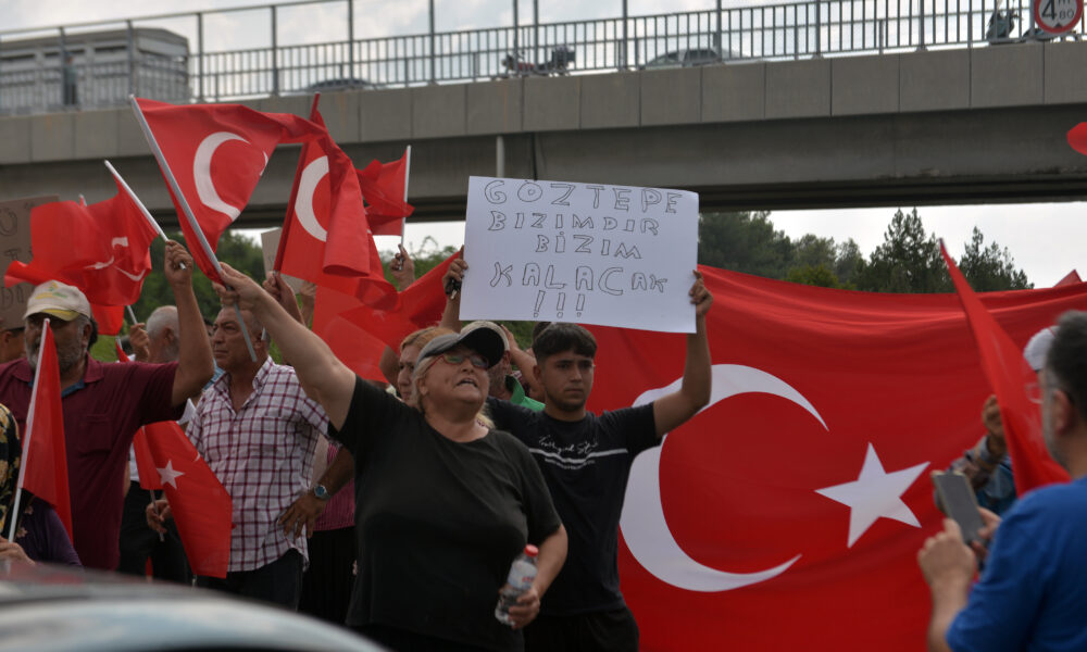 Sarıçam ilçesi kırsalındaki Göztepe Mahallesi’nde, işgaliye ücreti ödeyen ancak imar barışından faydalanmamış 600 hanenin bulunduğu hazine arazisinin, açık artırma yoluyla ihaleye açıldığını öne süren mahalleli, kararın durdurulmasına yönelik imza toplayıp, bakanlığa dilekçe gönderdi. Sabah saatlerinde mahalle meydanında buluşan ev sahipleri, ellerindeki Türk bayraklarıyla 100 metre uzaklıktaki TAG Otoyolu’na indi. Mahalleli, ‘Göztepe bizimdir, bizim kalacak’ yazılı dövizler taşıyıp slogan atarak Osmaniye istikametini trafiğe kapattı. Uzun araç trafiğinin oluştuğu otoyolda bazı sürücülerle mahalleli arasında zaman zaman gerginlik yaşandı.