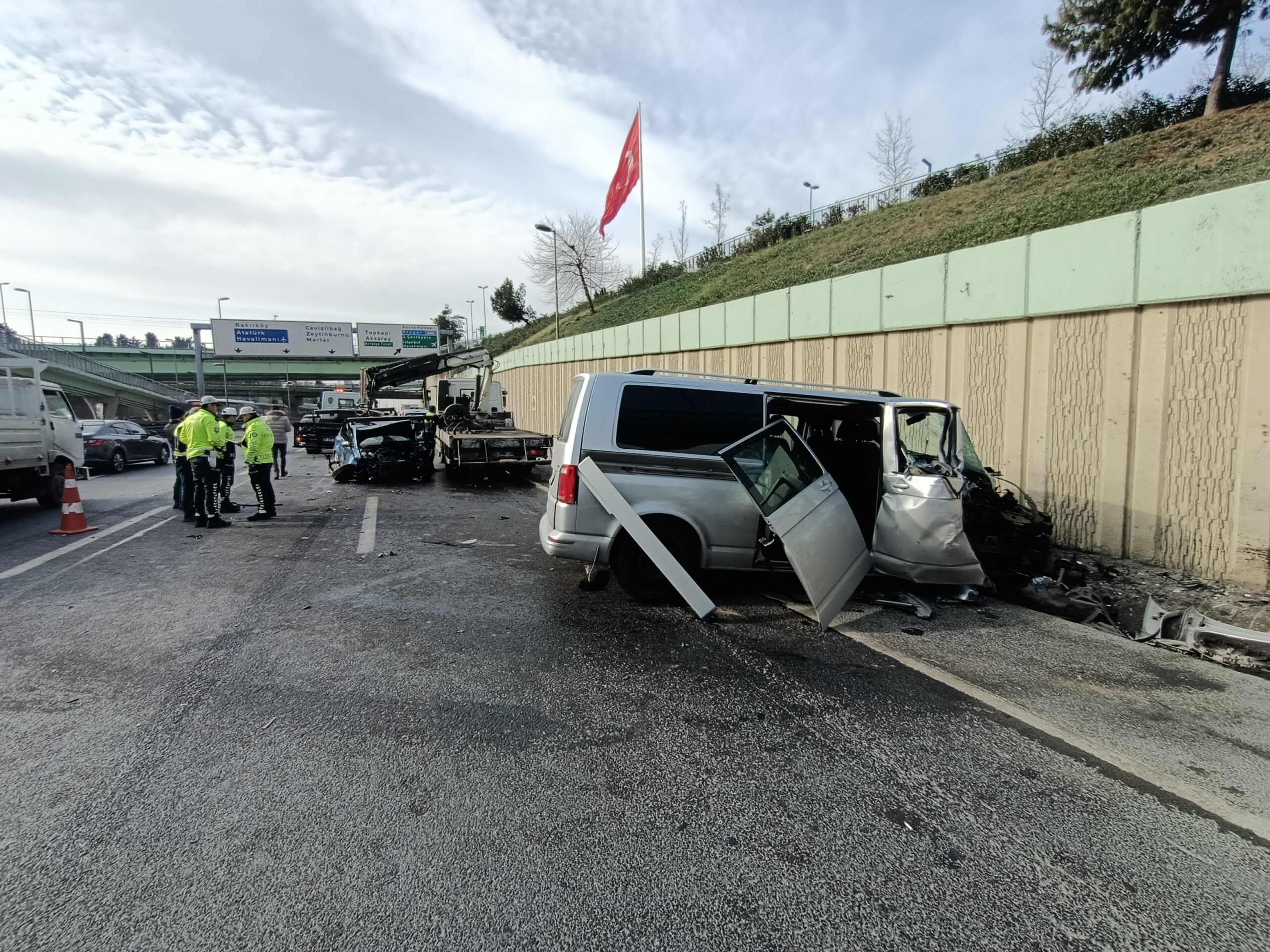 D-100 Karayolu Haliç mevkii Bakırköy istikametinde ilerleyen Mehmet Yurtseven yönetimindeki 34 GCA 625 plakalı otomobil, sürücüsünün direksiyon hakimiyetini kaybetmesi sonucu aynı istikamette ilerleyen Salih Ateş’in kullandığı 34 BYK 796 plakalı kamyonete çarptı. Kazada Salih Ateş, yanındaki Yahya Ateş ve kazaya karışan diğer aracın sürücüsü Mehmet Yurtseven yaralandı. Kaza sonrası Mehmet Yurtseven’in içinde bulunduğu otomobil yanmaya başladı. Çevredekilerin yardımıyla yaralı sürücü aracın içinden çıkarıldı. Yanan araç, itfaiye ekiplerince söndürüldü. Yaralılar olay yerine gelen ambulanslarla hastaneye kaldırılırken, kaza nedeniyle Bakırköy istikametinde trafik yoğunluğu oluştu. Araçların olay yerinden kaldırılmasının ardından trafik normale döndü.