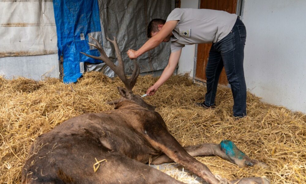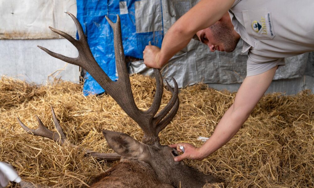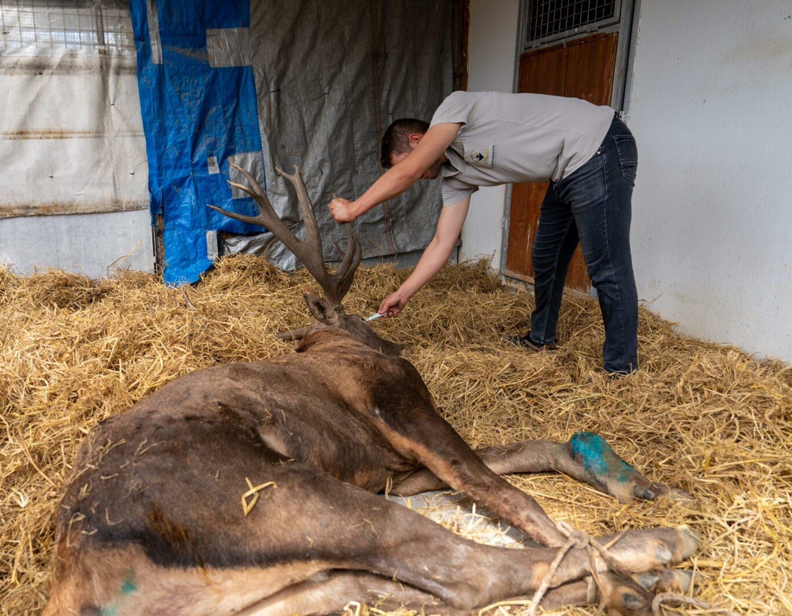 İzmir Büyükşehir Belediyesi Veteriner İşleri Halk Sağlığı Daire Başkanlığına bağlı Veteriner Hekim Şükrü Erdem Onur, “Yaralı kızılgeyik bize getirildi ve hemen anesteziye alıp tedaviye başladık. Röntgen çekildi. Ayakta kırık olduğunu gördük. Yine ateşli silahla yaralanma sonucu ayağında çok sayıda saçmanın olduğunu da tespit ettik. Ayağı çok kötü durumdaydı. Her iki tarafta tenis topu büyüklüğünde çıkıntılar var. Bunların kemik üremesine bağlı olduğunu düşünüyoruz” dedi.