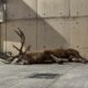 Fabrikanın bahçesinde bulunan yaralı geyik tüfekle vurulmuş