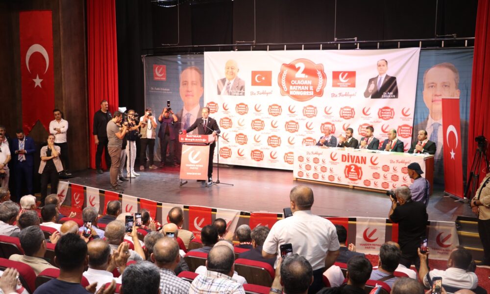 Yeniden Refah Partisi Genel Başkanı Fatih Erbakan, partisinin 2nci olağan il kongresine katılmak üzere Batmana geldi. Ahmet Güneştekin Kültür ve Sanat Merkezinin konferans salonunda düzenlenen kongreye siyasi parti temsilcileri, bazı sivil toplum kuruluşları ve partililer katıldı. Kongrede mevcut İl Başkanı Ziyaülhak Yamaç, tek listeyle gidilen seçimde yeniden il başkanı seçildi. Kongrede konuşan Erbakan, İsrail ve Amerika’nın insanlık suçlarına yenilerini eklediğini ifade ederek, “2 seneye yaklaşan Gazze soykırımı ve son olarak haksız, hukuksuz bir şekilde İrana yapılan saldırı hepimizin malumudur. Azgın terörist İsrail ve onun uşağı Amerika Arz-u Mev’ud hayallerine ulaşmak için gece gündüz demeden çalışıyor ve rahmetli Erbakan Hoca’mızın tabiriyle, terbiye edilmemiş bir aygır gibi önüne geleni tepmeye devam ediyor. Siyonist İsrail, terörist İsrail ve onun uşağı Amerika Gazzede, Yemende, İranda insanlık suçlarına yenilerini eklemeye devam ediyor. Hukuk tanımıyor, adalet tanımıyor, hiçbir insani değeri tanımıyorlar” dedi.
