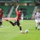 62’nci dakikada atağa geçen Bandırma Spor’da kalabalık şekilde rakip yarı alanına geldi. Topla buluşan Mexer, yaklaşık 30 metreden vurduğu top az farkla auta çıktı.