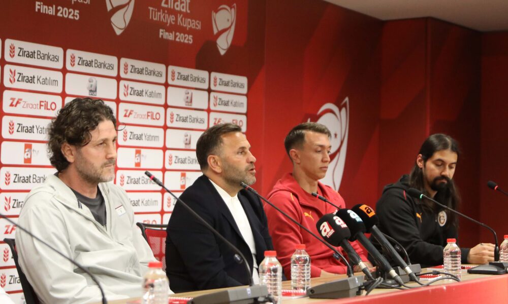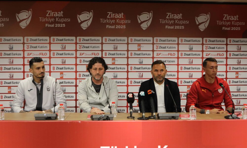 Trabzonspor ile Galatasaray Türkiye Kupası’nda Gaziantep’te yarın oynayacakları final maçıyla kupada 20’nci kez birbirlerine rakip olacak. Yarın Gaziantep Büyükşehir Stadyumu’nda oynanacak olan maç öncesi her iki takımın kafilesi Gaziantep’e geldi. Trabzonspor Teknik Direktörü Fatih Tekke, Galatasaray Teknik Direktörü Okan Buruk, Galatasaray kaptanı Fernando Muslera, Trabzonspor kaptanı Uğurcan Çakır ortak basın toplantısı düzenledi. Önce basın toplantısı odasına bırakılan Türkiye Kupası ile birlikte yapılan fotoğraf çekiminin ardından açıklamalarda bulunuldu.