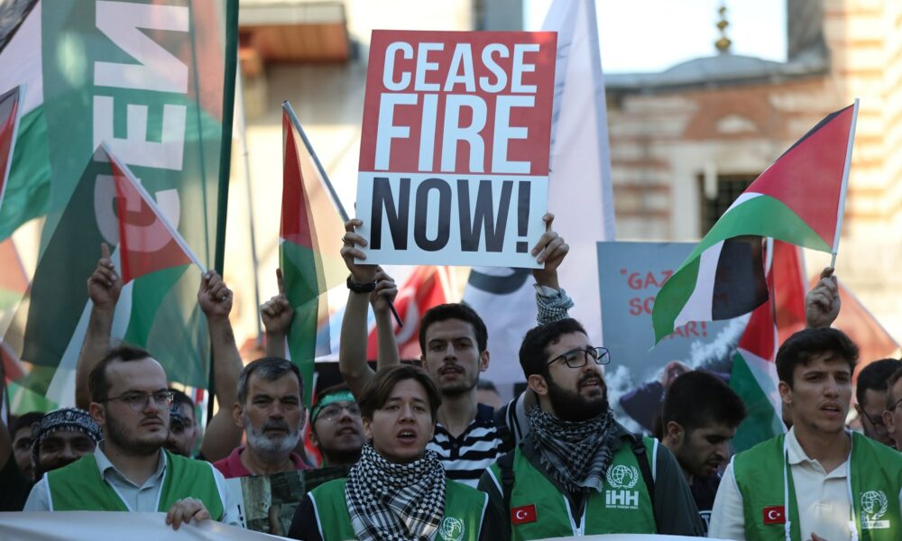 Eylemde katılımcılar, Fatih Camii önünden Edirnekapıya kadar yürüdü. Binlerce kişi yürüyüş boyunca Katil İsrail Filistinden defol, Katil İsrail iş birlikçi ABD, Nehirden denize özgür Filistin, Gazze halkı yalnız değildir sloganları attı, tekbirler getirdi. Yürüyüşe, çevredeki vatandaşlar da destek verdi. Yürüyüş, Edirnekapıda sona erdi.