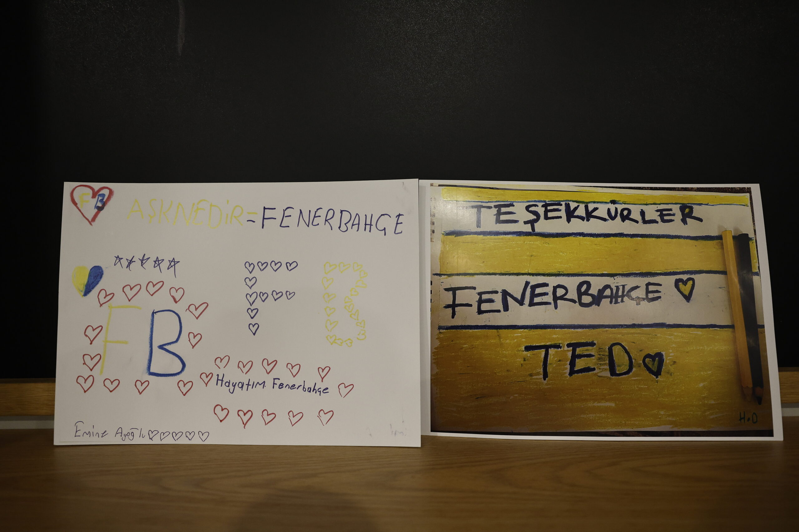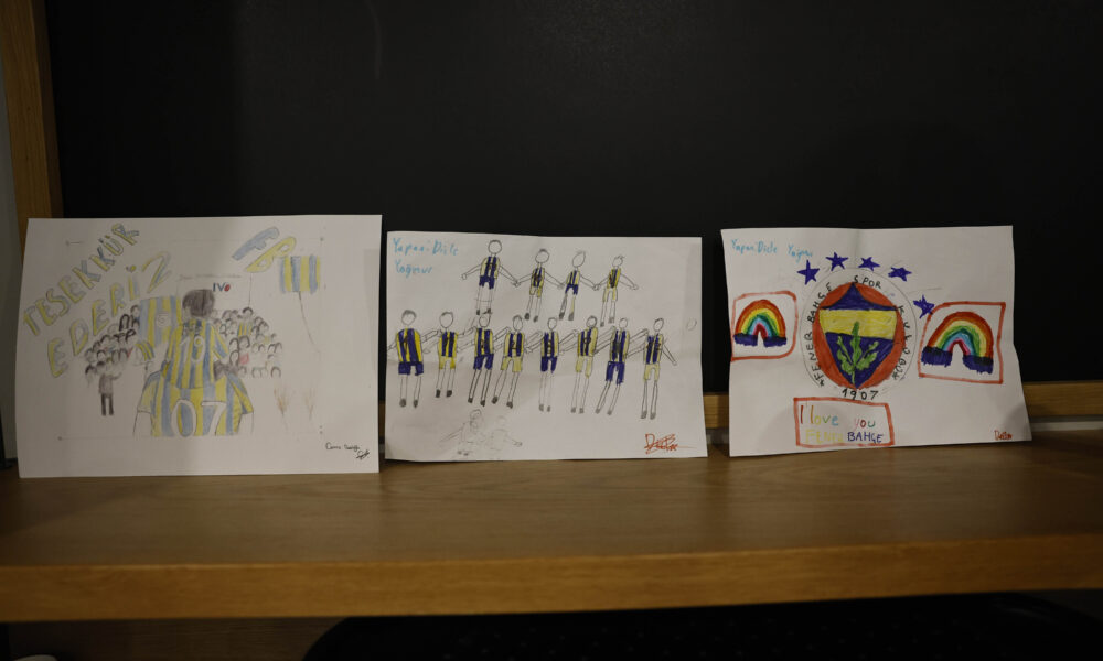 Ayrıca Fenerbahçe’nin burs verdiği ve bugün tesislere gelemeyen Hataylı çocukların çizdikleri resimler ve yazdıkları duygusal mektuplar da teknik direktör Jose Mourinho’ya armağan edildi. Mourinho çocuklara teşekkür ederken, onların yanında olmaktan duyduğu mutluluğu dile getirdi ve Hataylı çocuklar tarafından hazırlanan resimleri ve mektupları saklayacağını söyledi.
