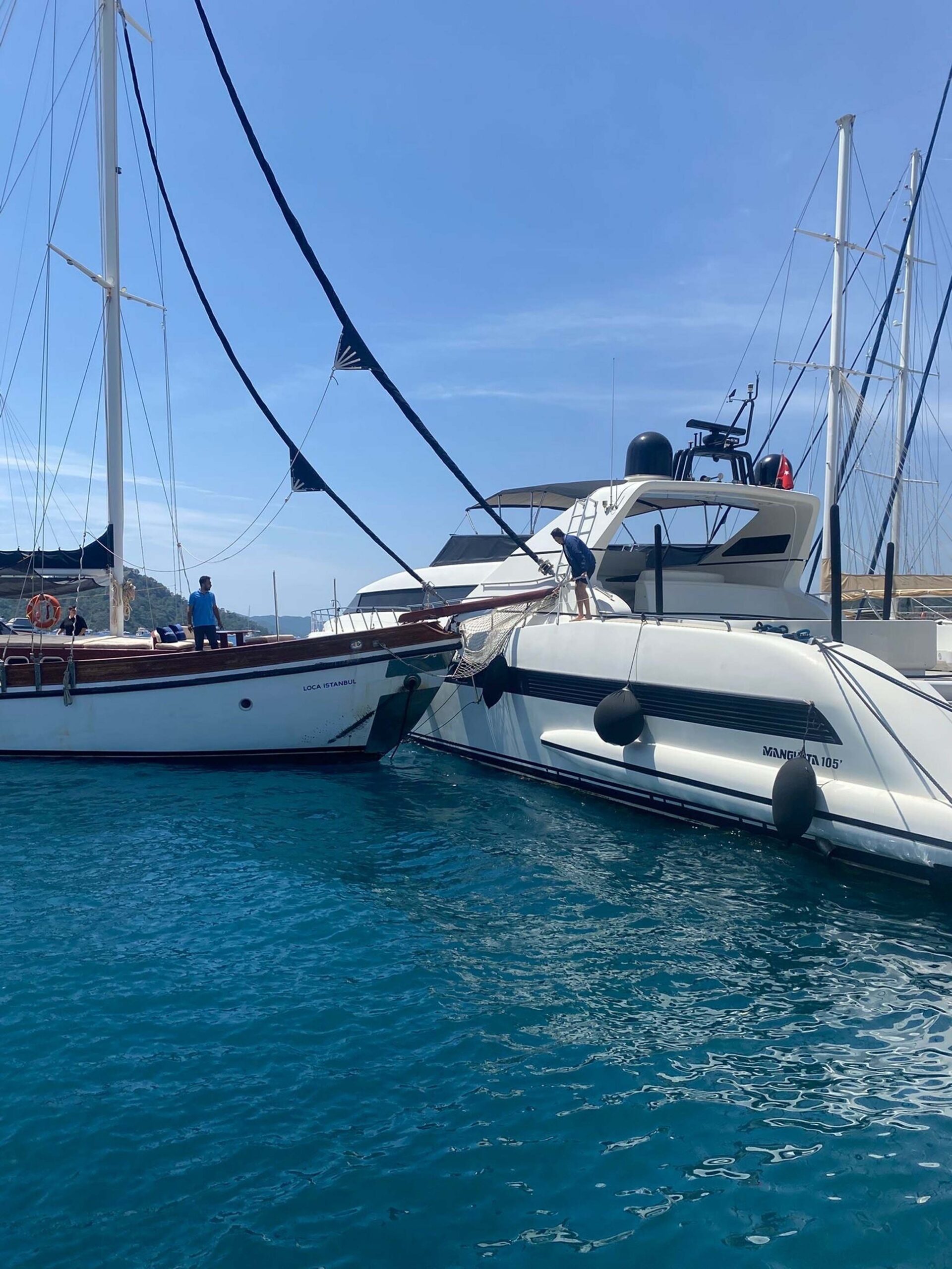 • Muğla'nın Fethiye ilçesinde marinaya yanaşmaya çalışan bir gulet lüks motoryata çarptı. Fotoğraf:Fethiye (Muğla),(DHA)