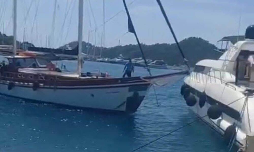 Fethiye’de guletin lüks motoryata çarptığı kaza kamerada