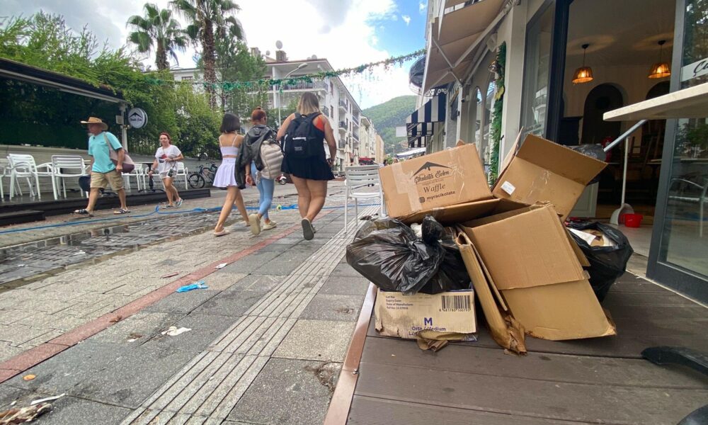 Fethiye’de sağanak sonrası sel suları çekildi; temizlik çalışması yapıldı