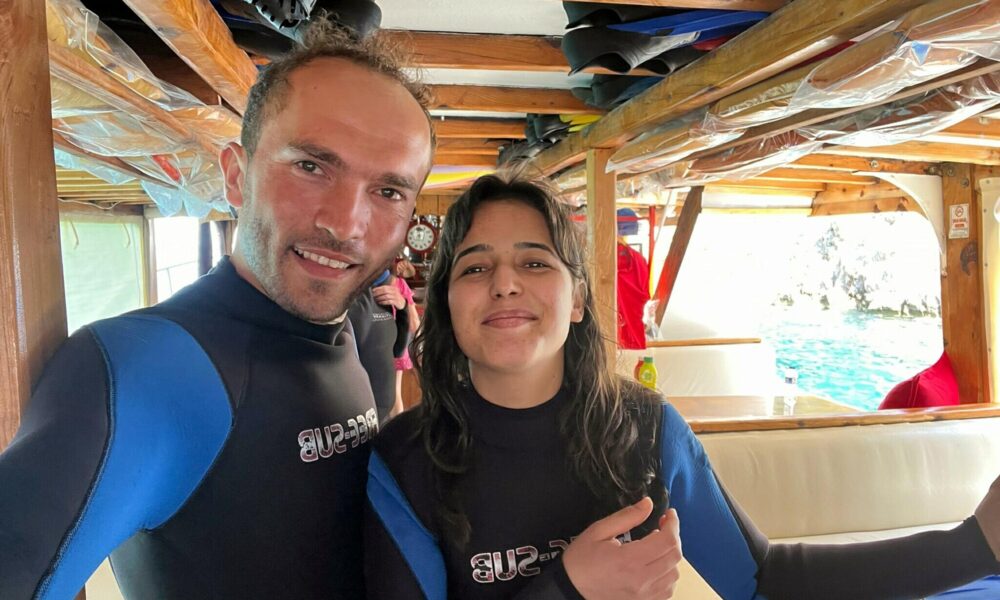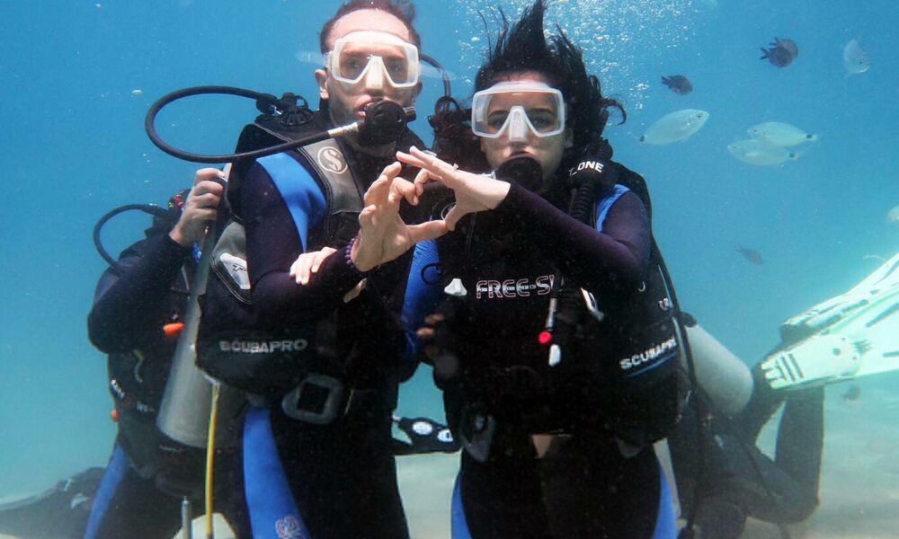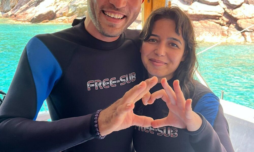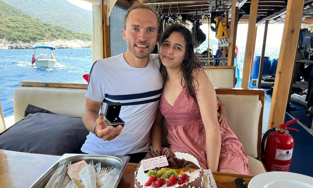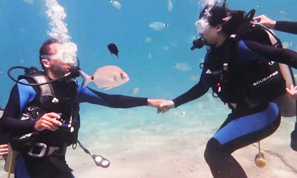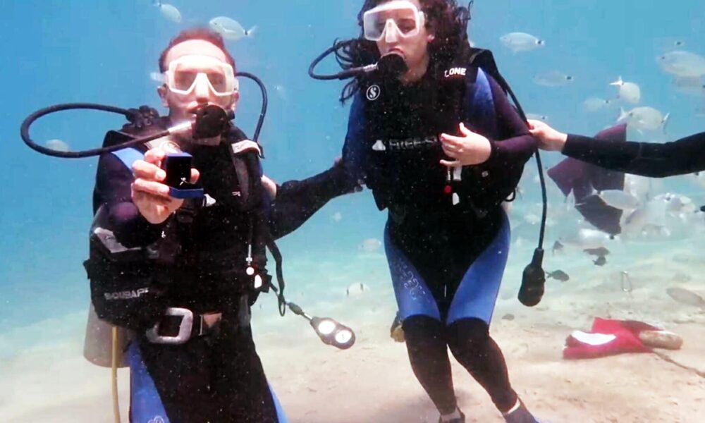 Fethiye’de su altında ‘tektaş’ ile sürpriz evlilik teklifi