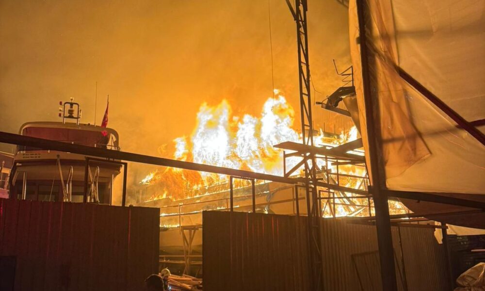 Fethiye’de yapımı süren 20 metrelik gulet teknede yangın