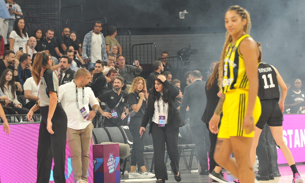 Basketbol Gelişim Merkezi’nde oynanan maçta son EuroLeague Women şampiyonu Fenerbahçe ile FIBA Avrupa Kupası (EuroCup) finalisti Beşiktaş karışı karşıya geldi. Müsabakanın 2nci dakikasında mücadele 4-2 sarı-lacivertli ekibin üstünlüğü ile devam ederken tribünlerden atılan yabancı maddelerin ardından hakemlerin uyarısıyla Türk ekipleri soyunma odasının yolunu tuttu.