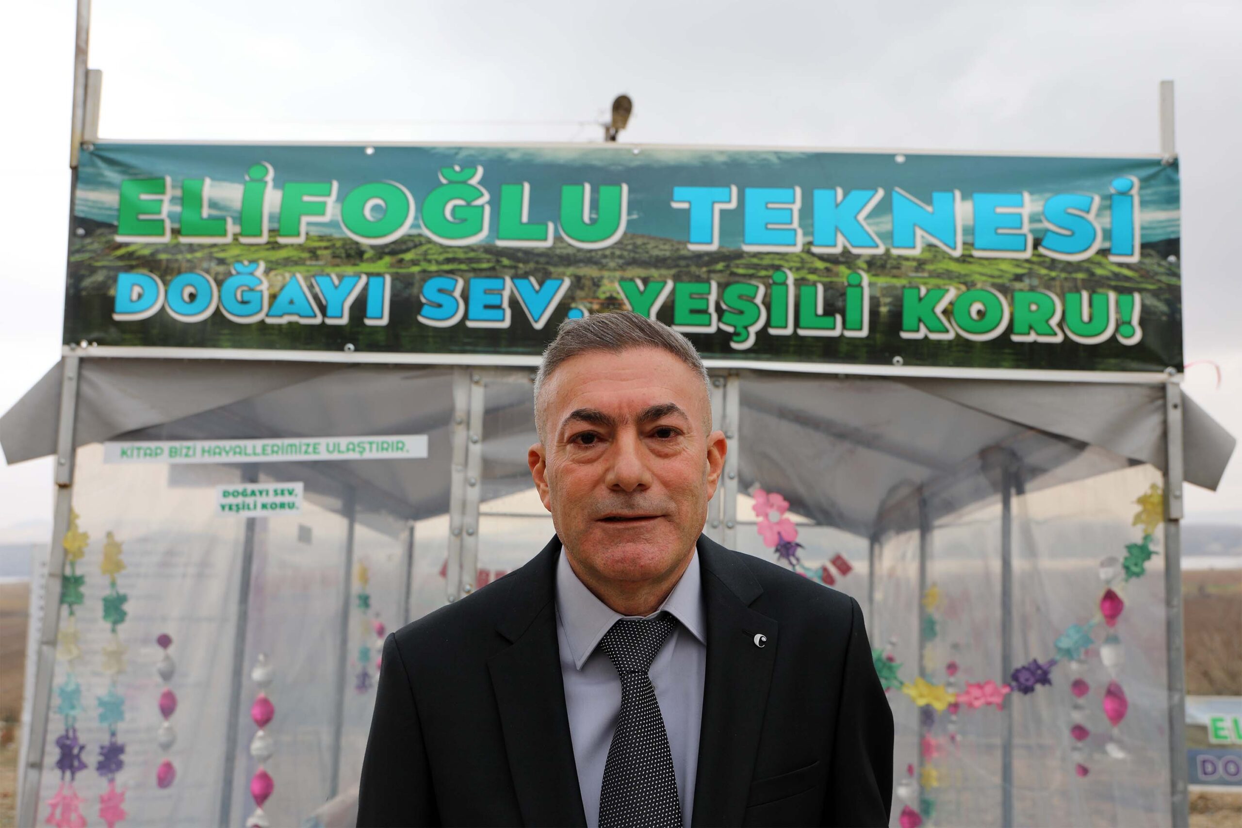 • Gaziantep'te Elifoğlu İlkokulu'na müdür olarak atanan Abdullah Demir (Fotoğrafta), Fırat Nehri kıyısında gördüğü atıl vaziyetteki tekneyi onarıp, boyattıktan sonra kütüphaneye çevirdi. Fotoğraf: Nuray UZATMAZ/Gaziantep,(DHA)