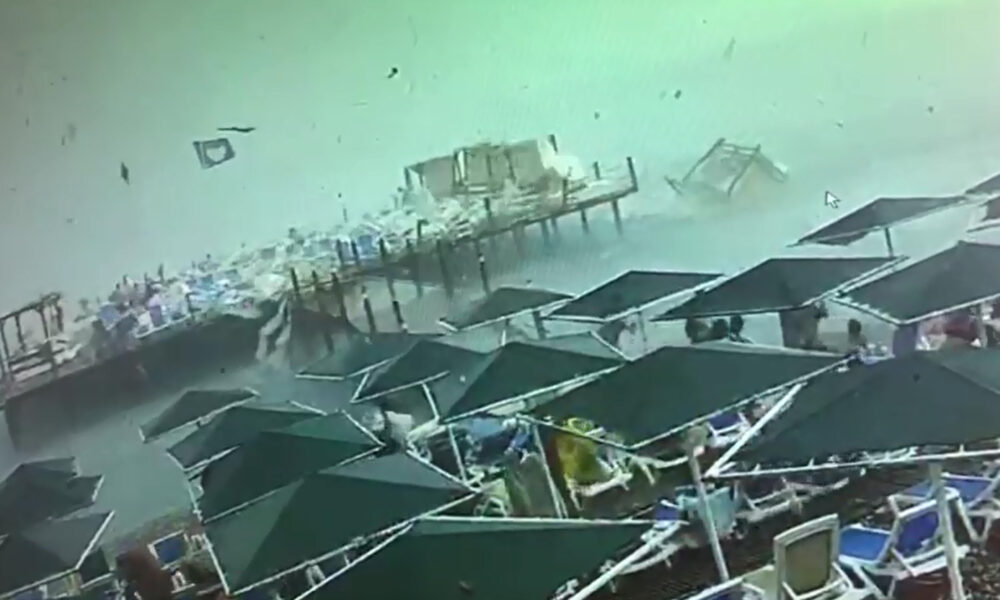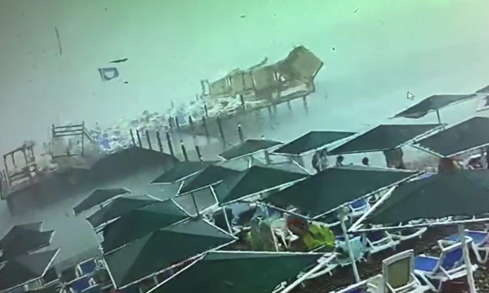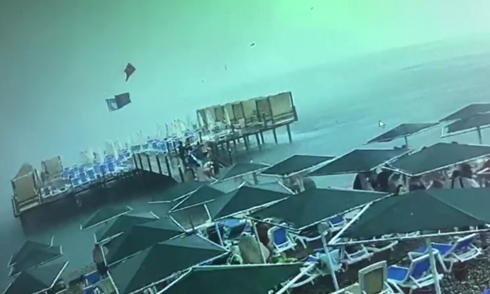Fırtınada şezlong, şemsiyelerin uçtuğu anlar kamerada
