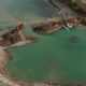 Atığın yığıldığı denizdeki çalışmalar, dron kamerasıyla görüntülendi.