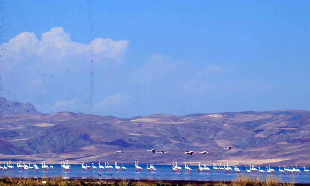 Doğal hayatın bozulmaması ve iklimin müsait olması durumunda flamingoların kasım ayına kadar bölgeyi terk etmeyeceklerini de belirten Prof. Dr. Aslan, “Ilıman bir kış geçirirsek flamingoları yıl boyunca burada görmek mümkün olacak. 253 kuş türü Van Gölü havzasında yaşıyor. Buraya kazlar da geliyor. Zaman zaman kazları ve flamingoları aynı karede görme imkanımız da oluyor. Flamingoları rahatsız etmezsek ve onların yaşam alanlarına girmezsek sayıları da her geçen gün artacaktır” diye konuştu.