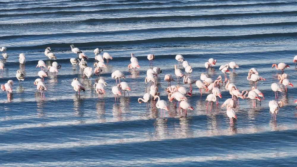 Her yıl havaların ısınmasıyla İran’daki Urmiye Gölü üzerinden Van Gölü ve çevresindeki sulak alanlara gelen flamingolar, genellikle havaların soğumasıyla daha sıcak bölgelere göç ediyor. Ancak bu yıl ocak ayında etkili olan soğuk hava koşullarına rağmen bazı flamingoların Van Gölü’nü terk etmemesi dikkat çekti. Doğa fotoğrafçısı Fatih Bilgiç tarafından görüntülenen flamingolar, karlı dağ manzaraları eşliğinde Van Gölü sahillerinde beslenmeye devam ediyor.