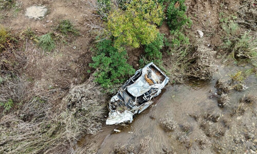 İzmir’in Foça ilçesinde sel sularına kapılıp kaybolan Bülent Kaptanoğlu’nun içinde olduğu otomobil ortaya çıktı. Otomobilin kullanılamaz hale geldiği görülürken, o anlar dronla görüntülendi. Fotoğraf: İzmir, (DHA)