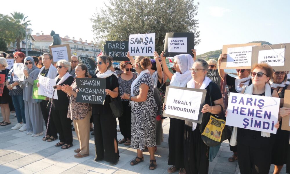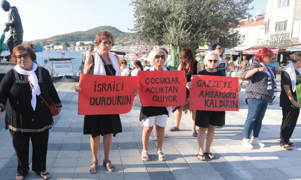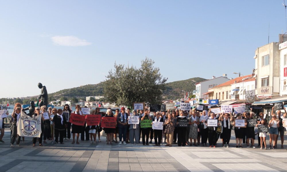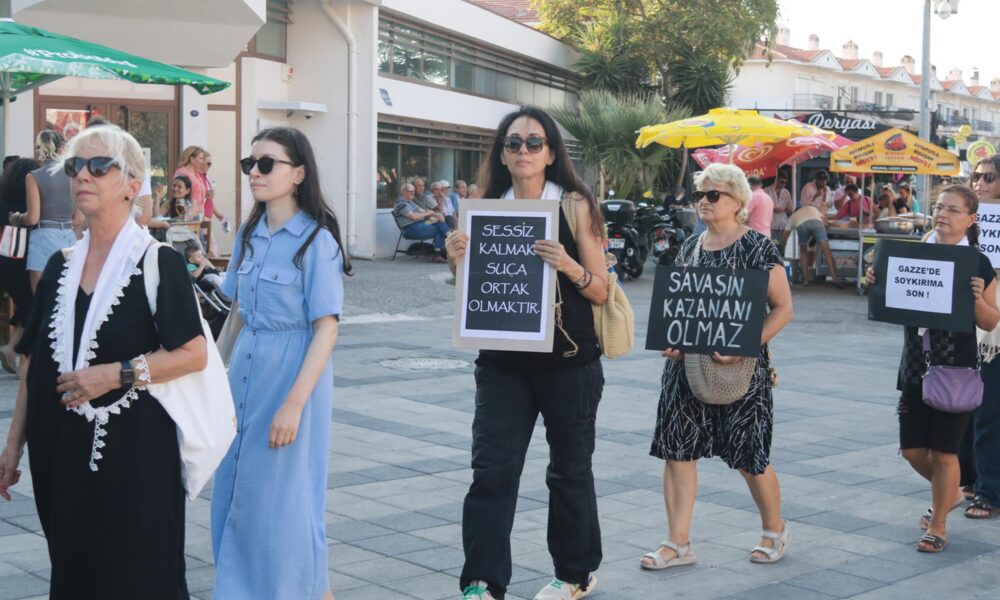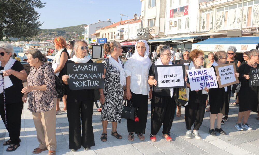 Foça Barış Kadınları tarafından düzenlenen eyleme inisiyatif üyeleri ile Foçalı kadınların yanı sıra yerli turistler de katıldı. Reha Midilli Sevgi Caddesinde toplanan kadınlar; ellerinde Gazzede Soykırıma Son, Kadınlar Barış İstiyor, İsraili Durdurun, Sessiz Kalmak Suça Ortak Olmaktır, Savaşın Kazananı Olmaz, Barış İstiyoruz, “Savaşa Hayır, Soykırıma ve İşgale Direnen Filistinli Kadınların Yanındayız, Çocuklar Açlıktan Ölüyor, Gazze’ye Ambargoyu Kaldırın yazılı dövizlerle Nihat Dirim Barış ve Demokrasi Meydanına yürüdü. Eylem, Filistin şarkıları eşliğinde alkışlı protestolarla tamamlandı.