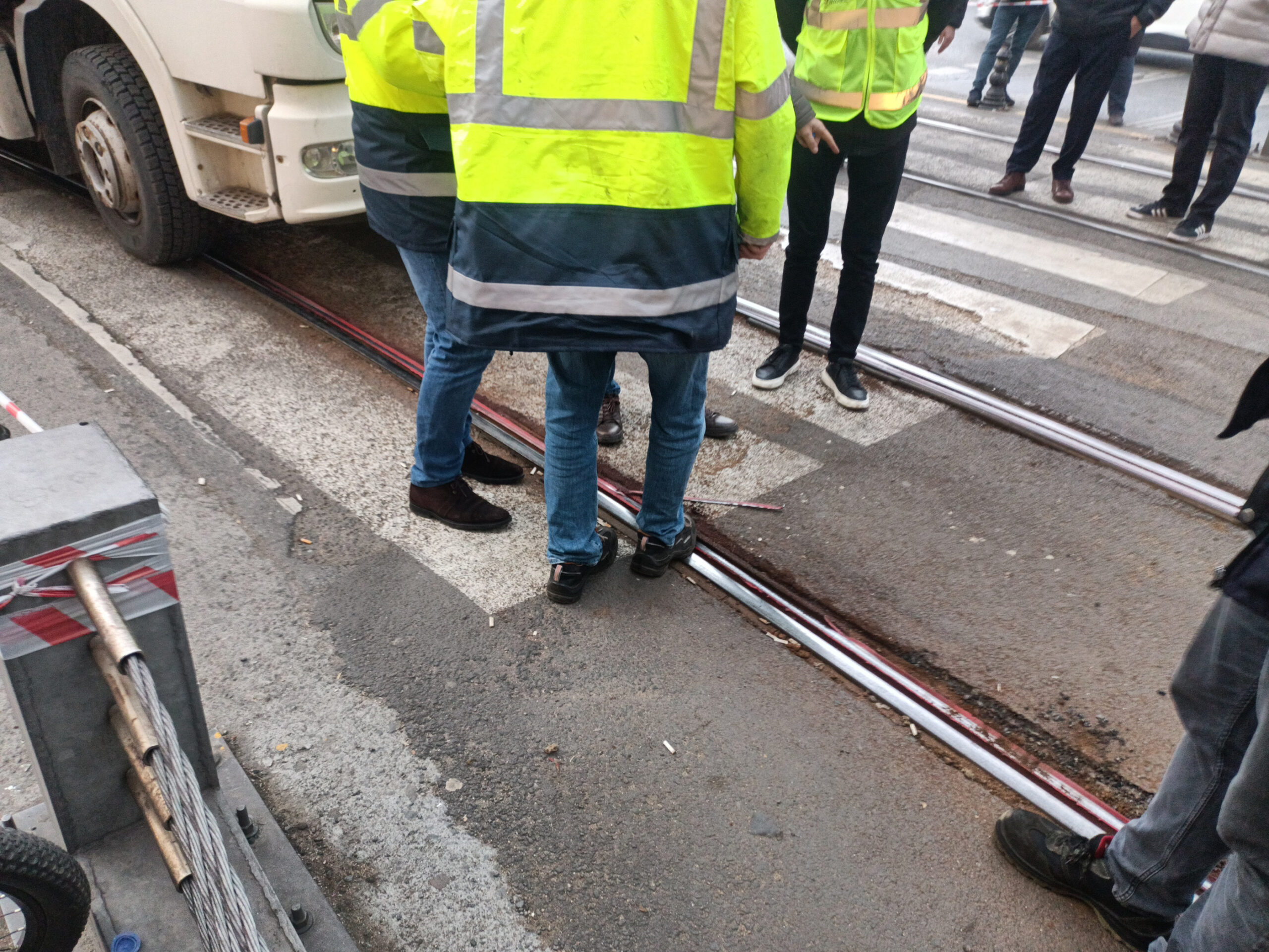 Sirkeci’de aynı yerde tramvay yeniden raydan çıktı
