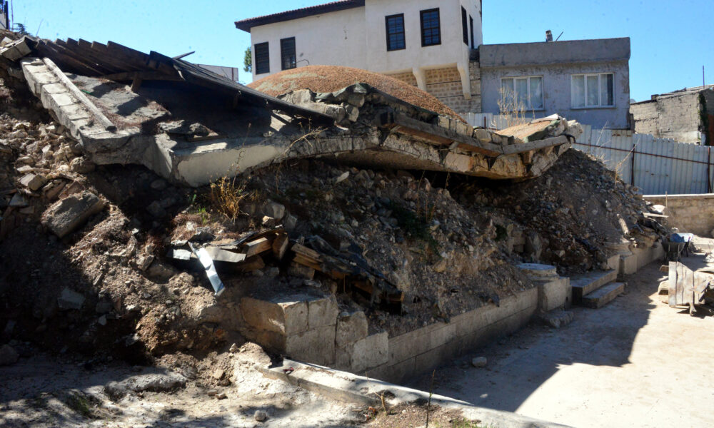 • Kahramanmaraş depremlerinde yıkılan tarihi Şeyh Turan Camii’nin minaresinde 103 yıldır patlamadan duran 75 milimetrelik top mermisi, depremden 20 ay sonra cami enkazından bulunarak koruma altına alındı. Gaziantep Vakıflar Bölge Müdürü Adem Bozkurt (Fotoğr