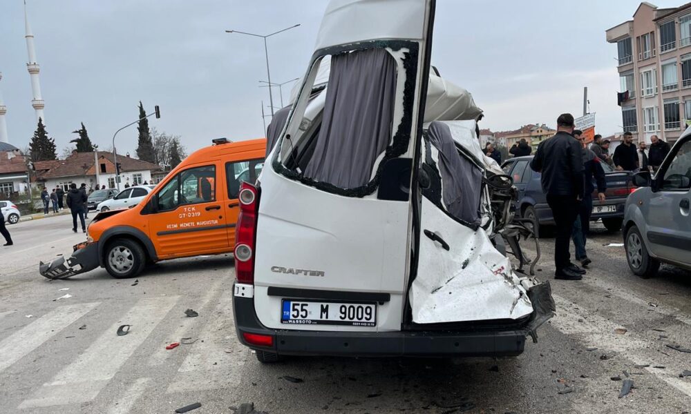 Samsun'un Vezirköprü ilçesinde 5 aracın karıştığı kazada 10'u öğrenci toplam 19 kişi yaralandı. Fotoğraf: Samsun, (DHA)