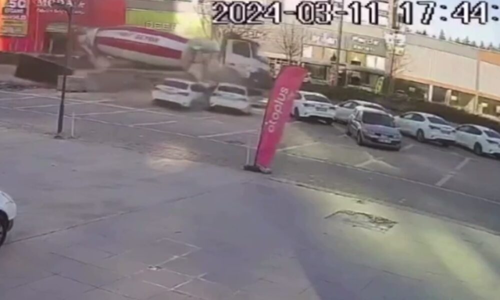 Freni boşalan beton mikseri park halindeki otomobillere çarptı; kaza anı kamerada