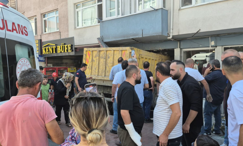 İş yerinin önünden geçen bir motosiklet sürücüsü ise hızla gelen hafriyat kamyonunun altında kalmaktan son anda kurtuldu. Güvenlik kameralarına yansıyan kazayla ilgili soruşturma başlatıldı.