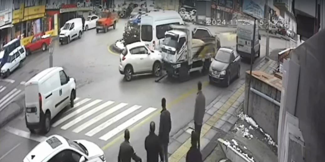 Kaza, saat 15.13te Yeşilbayır Mahallesi Sağduyu Caddesinde, meydana geldi. Caddede seyir halinde olan kum yüklü bir kamyonetin freni boşaldı. Bunun üzerine sürücüsünün idaresinden çıkan kamyonet karşı şeride geçerek önce trafik ışıklarında bekleyen araçlara daha sonra ise park halindeki araçlara çarparak durabildi. Yolda bulunan bir otomobilin sürücüsünün, üzerine gelen kamyonetten geri geri giderek kurtulduğu da görüldü. Kazada 2 kişi hafif yaralanırken, 7 araç da hasar meydana geldi. Yaralılar, sağlık ekiplerince hastaneye kaldırıldı. Kaza anı ise cadde üzerinde bulunan bir iş yerinin güvenlik kamerasına yansıdı.
