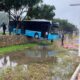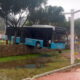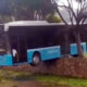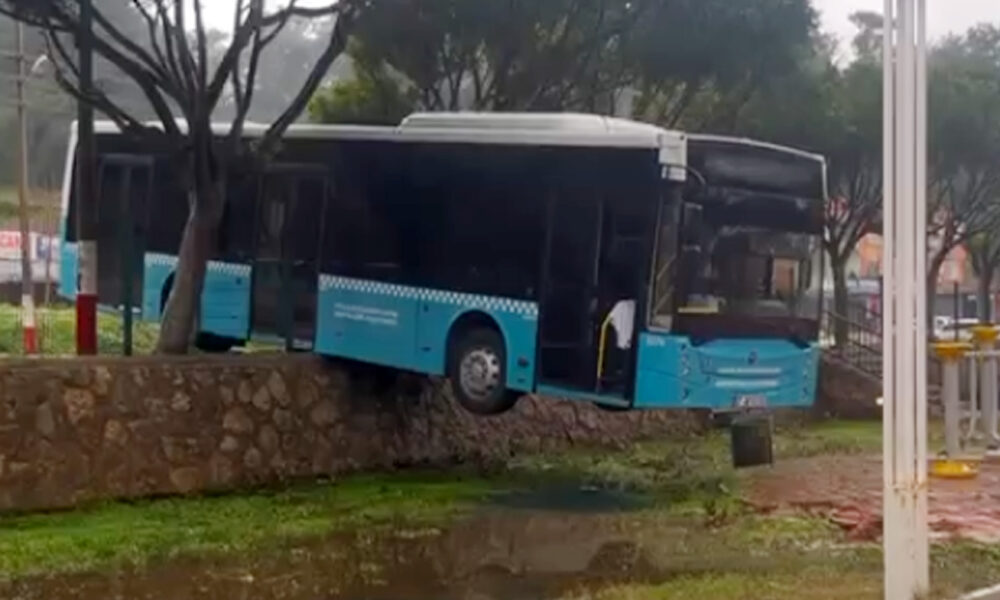Freni boşalan otobüs, duvarda asılı kaldı