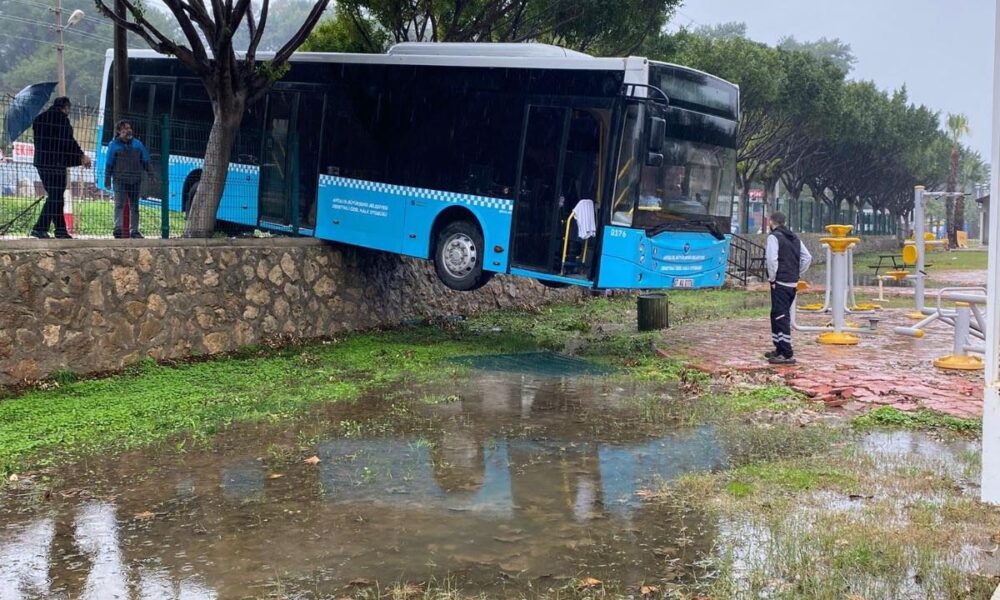 Aksu ilçesinde dün öğle saatlerinde, freni boşalan Büyükşehir Belediyesine ait 07 AU 0176 plakalı otobüs, kontrolden çıkarak Aksu Belediye binasının yan tarafında bulunan parkın duvarında asılı kaldı. Parkta o sırada kimsenin bulunmaması, olası faciayı önledi. Kazanın ardından, bölgeye polis ekipleri sevk edildi.