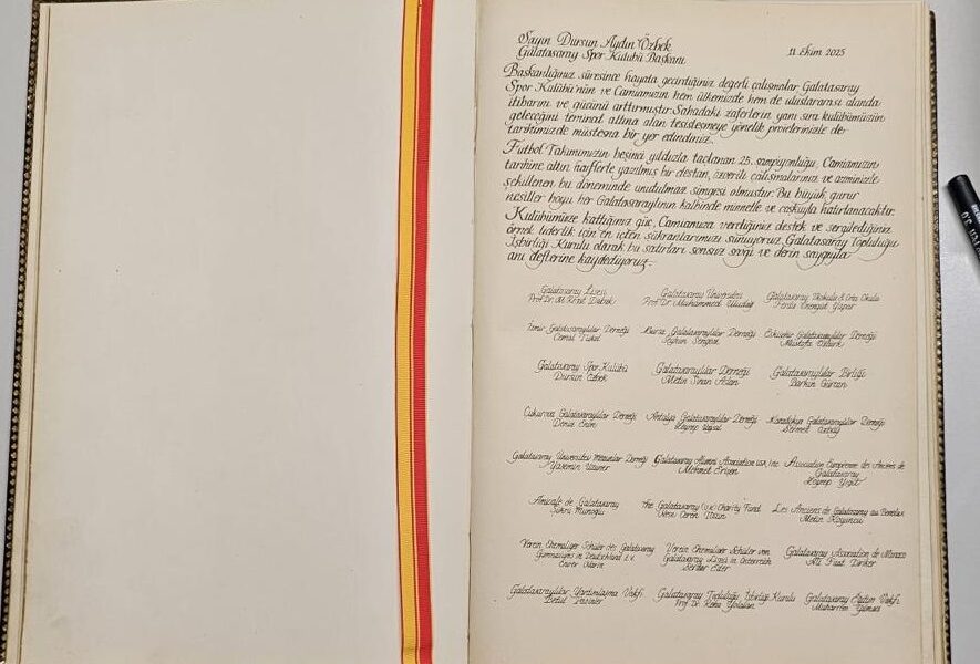 Galatasaray Lisesi anı defterine Başkan Özbek’e hitaben teşekkür yazısı hazırlandı