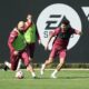 Salonda kuvvet çalışmasıyla başlayan idman, sahada ısınma ve geniş alanda topa sahip olma çalışmasıyla devam etti. Teknik direktör Okan Buruk yönetimindeki antrenman, iki ayrı sahada çift kale maçla sona erdi.