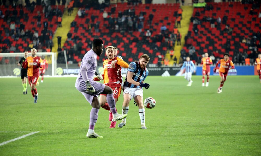 48’inci dakikada kaleci Uğurcan Çakır’ın uzun pasında iki oyuncu arasında kalan Barış Alper’in kafa vuruşunu kaleci Onana çizgiden çıkardı.