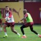 Kemerburgaz Metin Oktay Tesisleri’nde teknik direktör Okan Buruk yönetimindeki antrenman dinamik ısınmayla başladı. İki grup halinde 10’a 2 pas çalışması ve koşu çalışmasıyla devam eden antrenman, üç takımlı turnuvayla sona erdi.