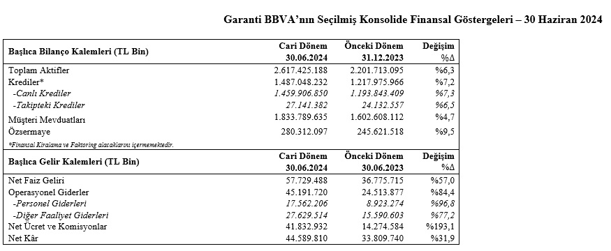 Garanti BBVA, 2024 yılı ikinci çeyrek finansal sonuçlarını açıkladı