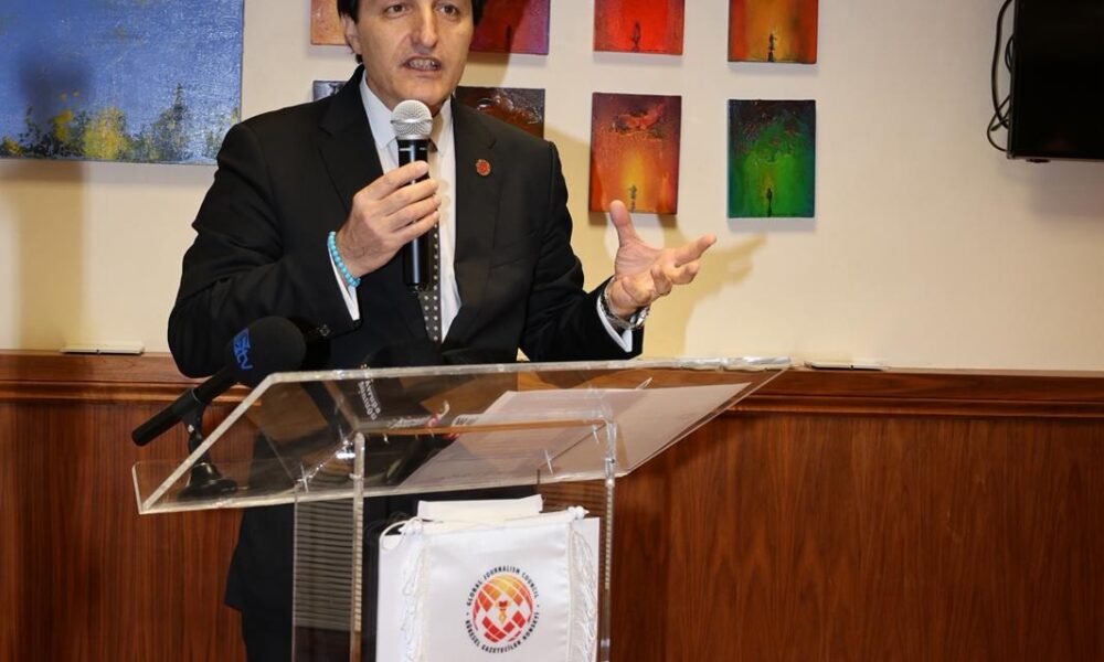 KGK Genel Başkanı Mehmet Ali Dim ise organizasyon için Öze teşekkür ederek Türkiyedeki meslektaşlarının selamlarını iletti. Dim, gazetecilik mesleğinin dijitalleşme ve sosyal medyanın hızlı yükselişiyle köklü bir dönüşüm sürecinden geçtiğini ifade etti. Dim, “Sosyal medyanın geleneksel medyanın alanına giderek daha fazla nüfuz etmesi en büyük kaygılarımızdan biri. Gazetecilik adı altında paylaşılan içeriklerin önemli bir bölümünü dezenformasyon içeriyor. Bu yalnızca Türkiye için değil, gelişmiş demokrasiler dahil birçok ülke için ciddi bir sorun teşkil ediyor” dedi.